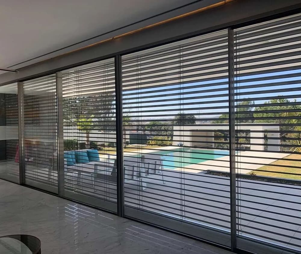 - Para un diseño moderno y limpio: La cortina de oscurecimiento integrada se adapta perfectamente a espacios minimalistas y puertas balconeras.