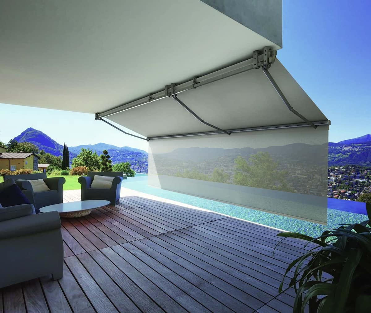 Novedad: toldos extensibles + verticales. Es un sistema moderno que permite configuraciones desde 2 hasta 6 brazos ocultos para cubrir grandes superficies. Con perfiles unibles de hasta 7 metros, ofrecen máxima protección lateral y superior contra el sol, viento y lluvia. Su diseño elegante y funcional aporta un plus de confort y estilo.