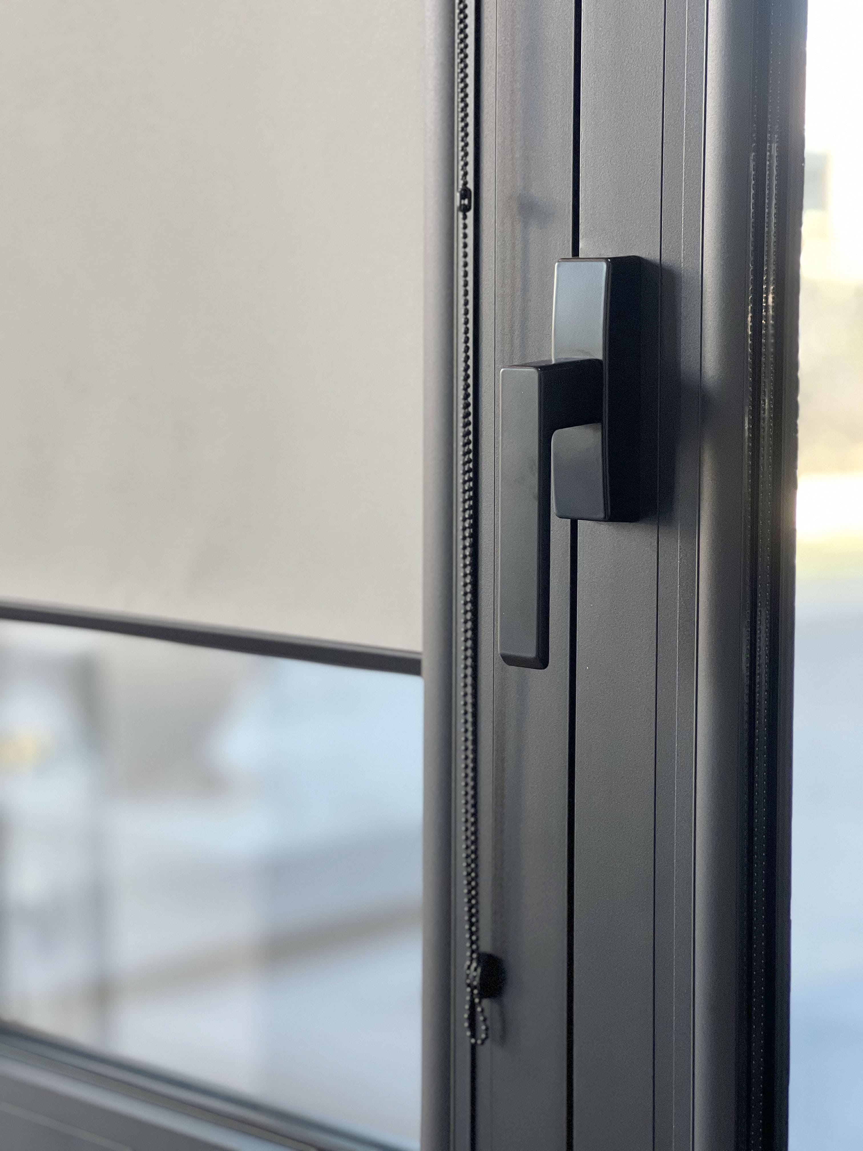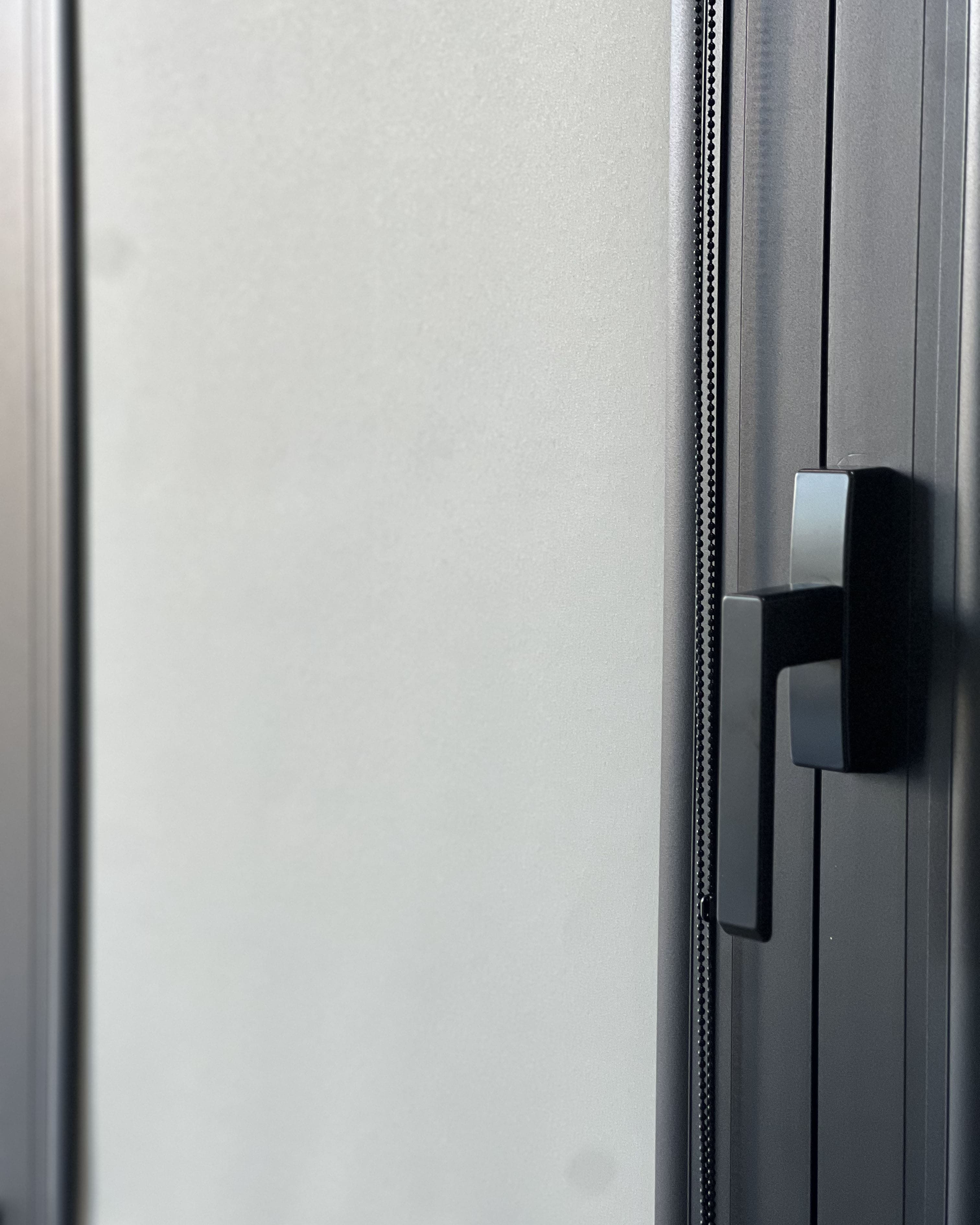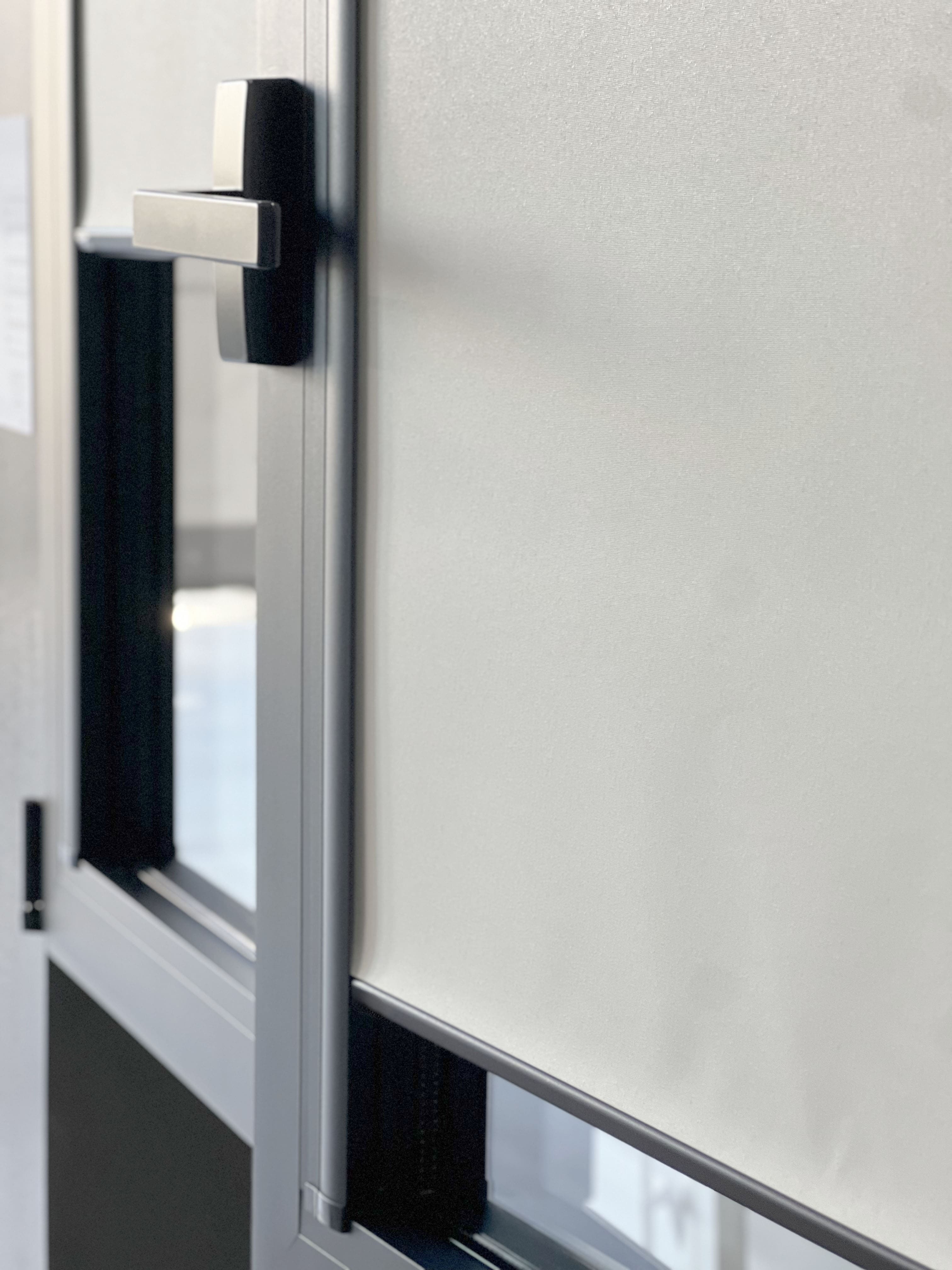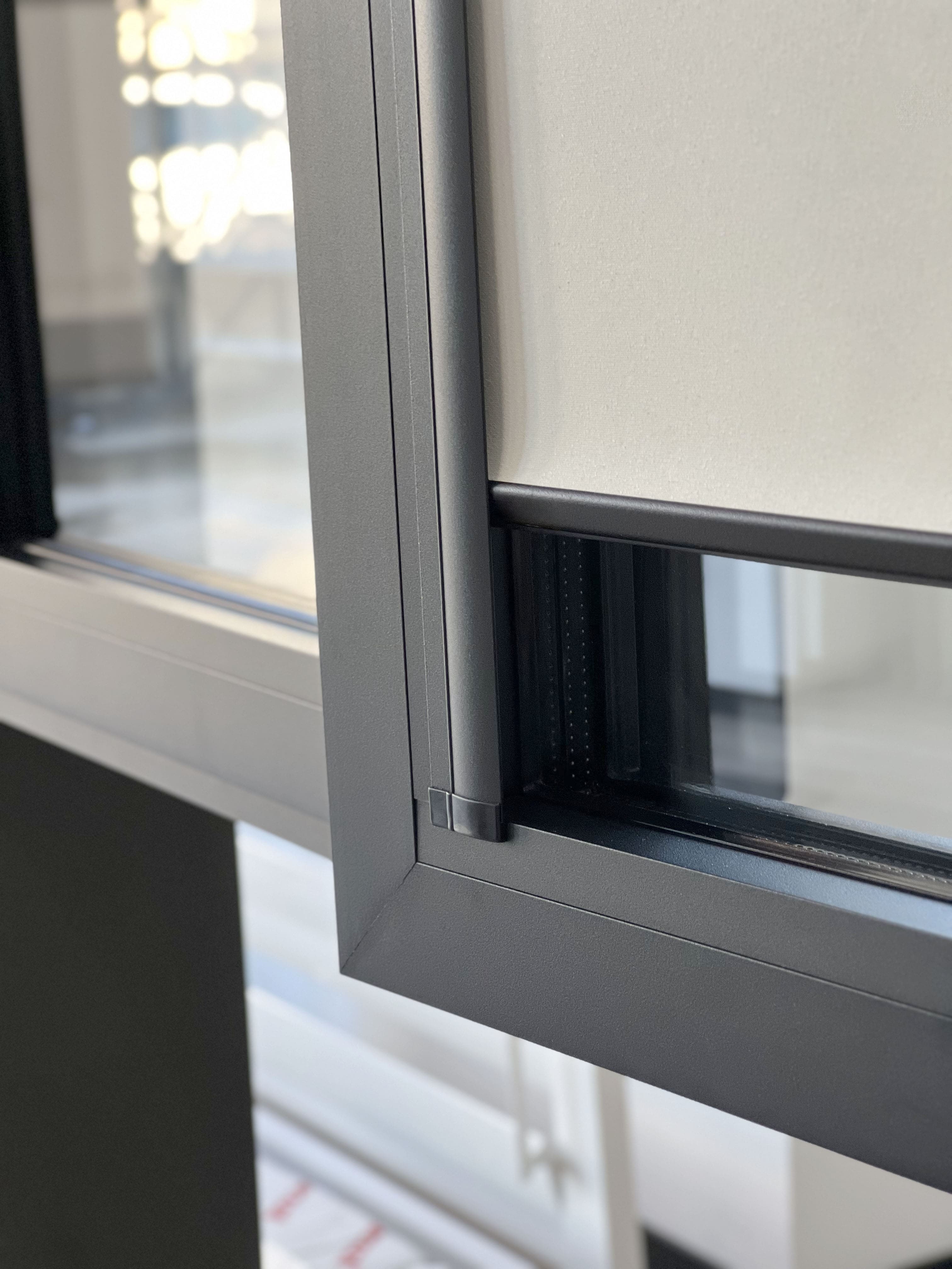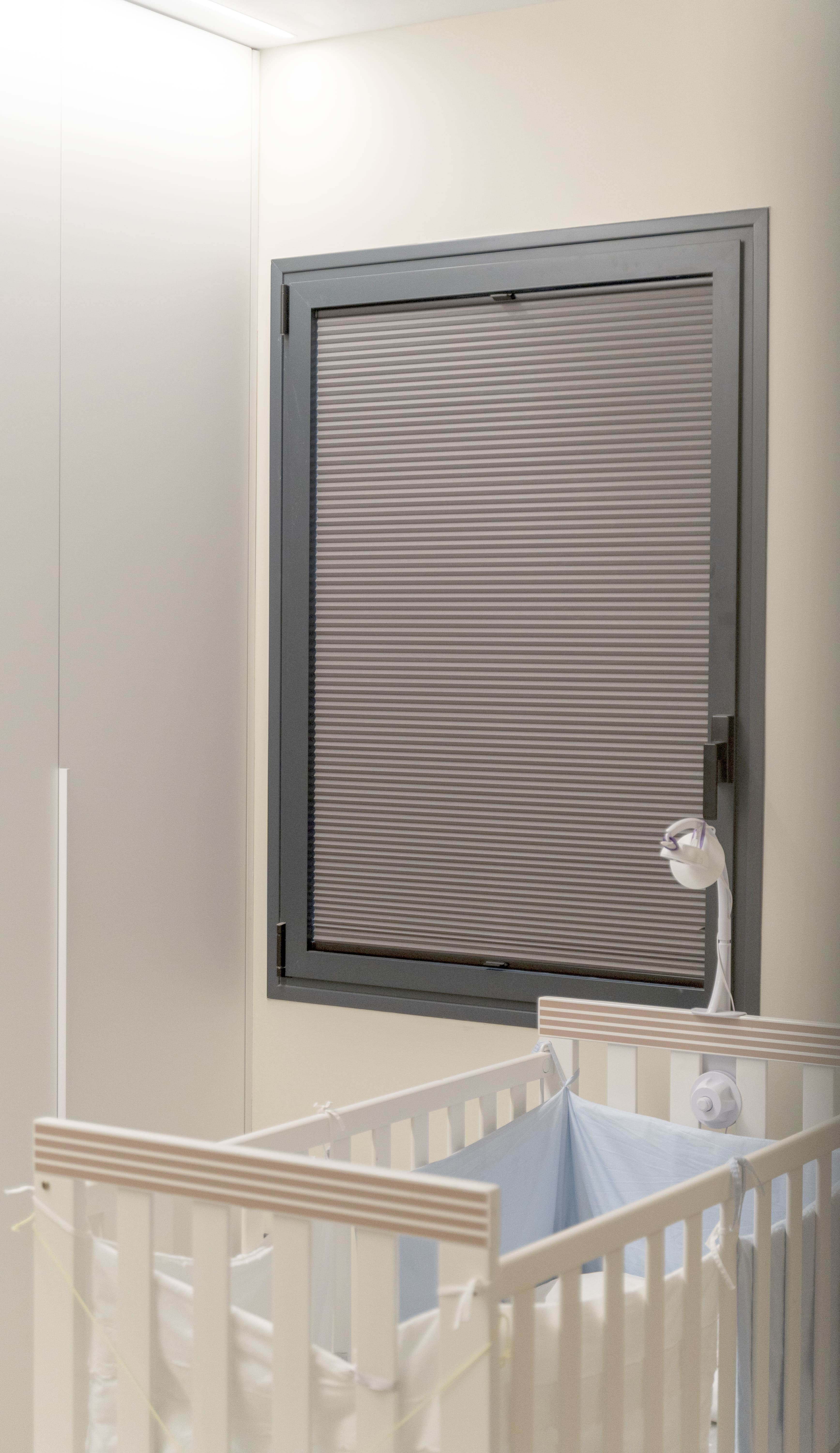 Cortina integrada en hoja con un sistema compacto de regulación de luz para ventanas y puertas, disponible en versión enrollable o plisada. Su diseño integrado ofrece un acabado limpio y minimalista, con múltiples opciones de color para adaptarse a cualquier estilo. Permite controlar la entrada de luz y la privacidad sin añadir elementos externos, aportando confort visual, durabilidad y una estética discreta y moderna.