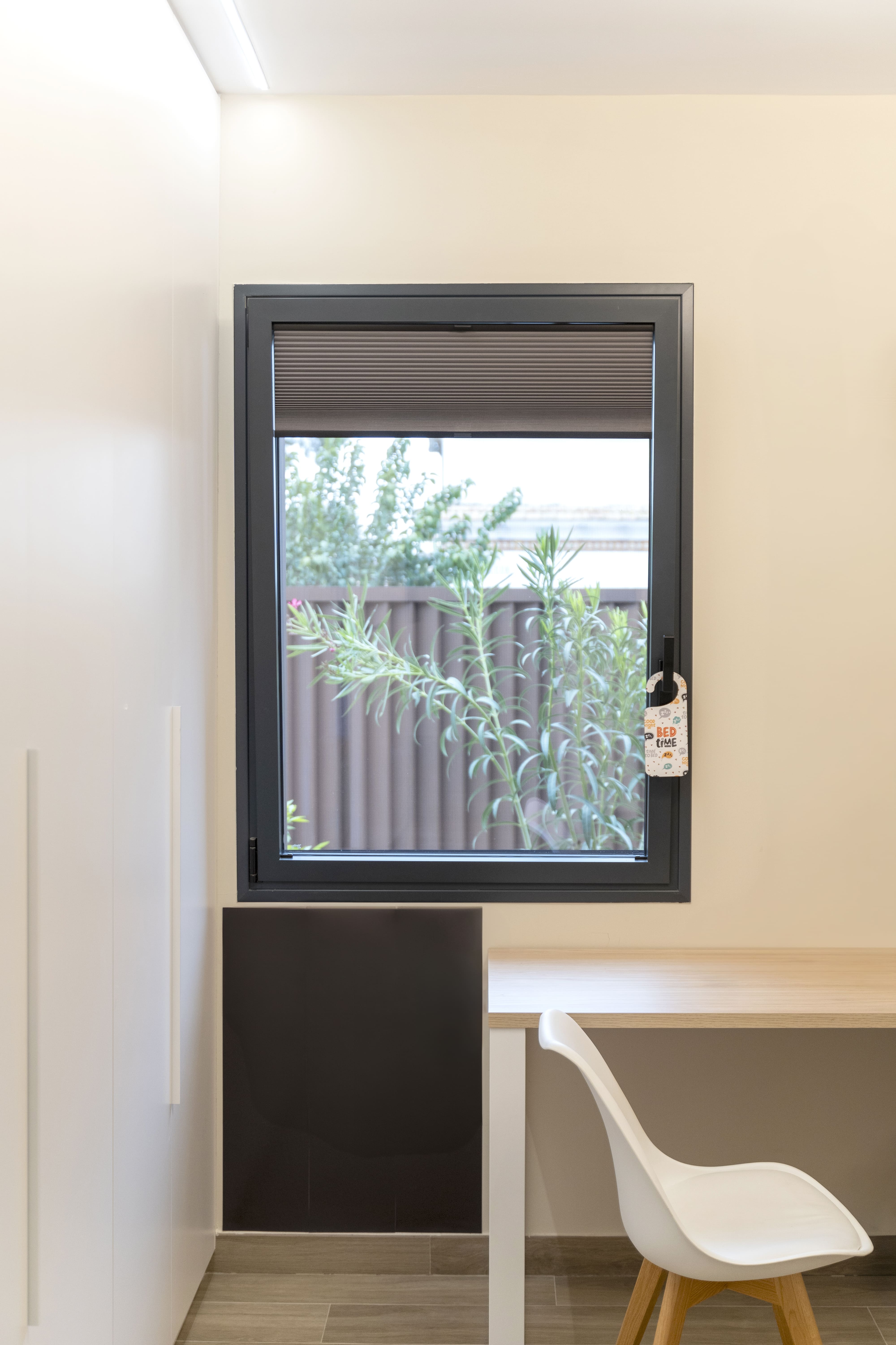 Las cortinas de oscurecimiento integradas son sistemas de sombreado que se instalan directamente dentro de la hoja de la ventana o puerta, formando parte del propio cerramiento. A diferencia de las cortinas tradicionales, no se colocan en la pared ni requieren soportes externos: quedan incorporadas en la estructura de la ventana, logrando un acabado compacto, discreto y minimalista.