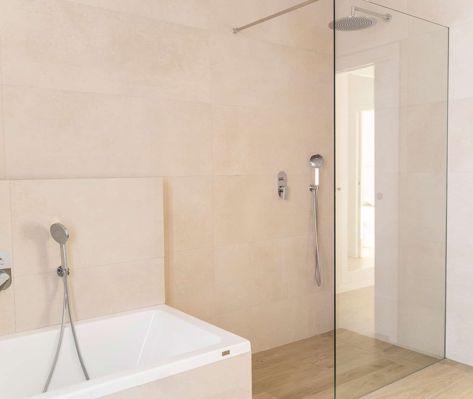Para baños pequeños, las mamparas correderas son ideales, ya que no necesitan espacio para abrirse. Si tienes más espacio, las mamparas fijas o con puertas batientes ofrecen un diseño más accesible y moderno.
