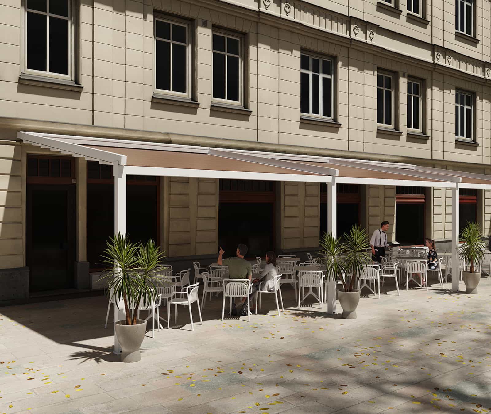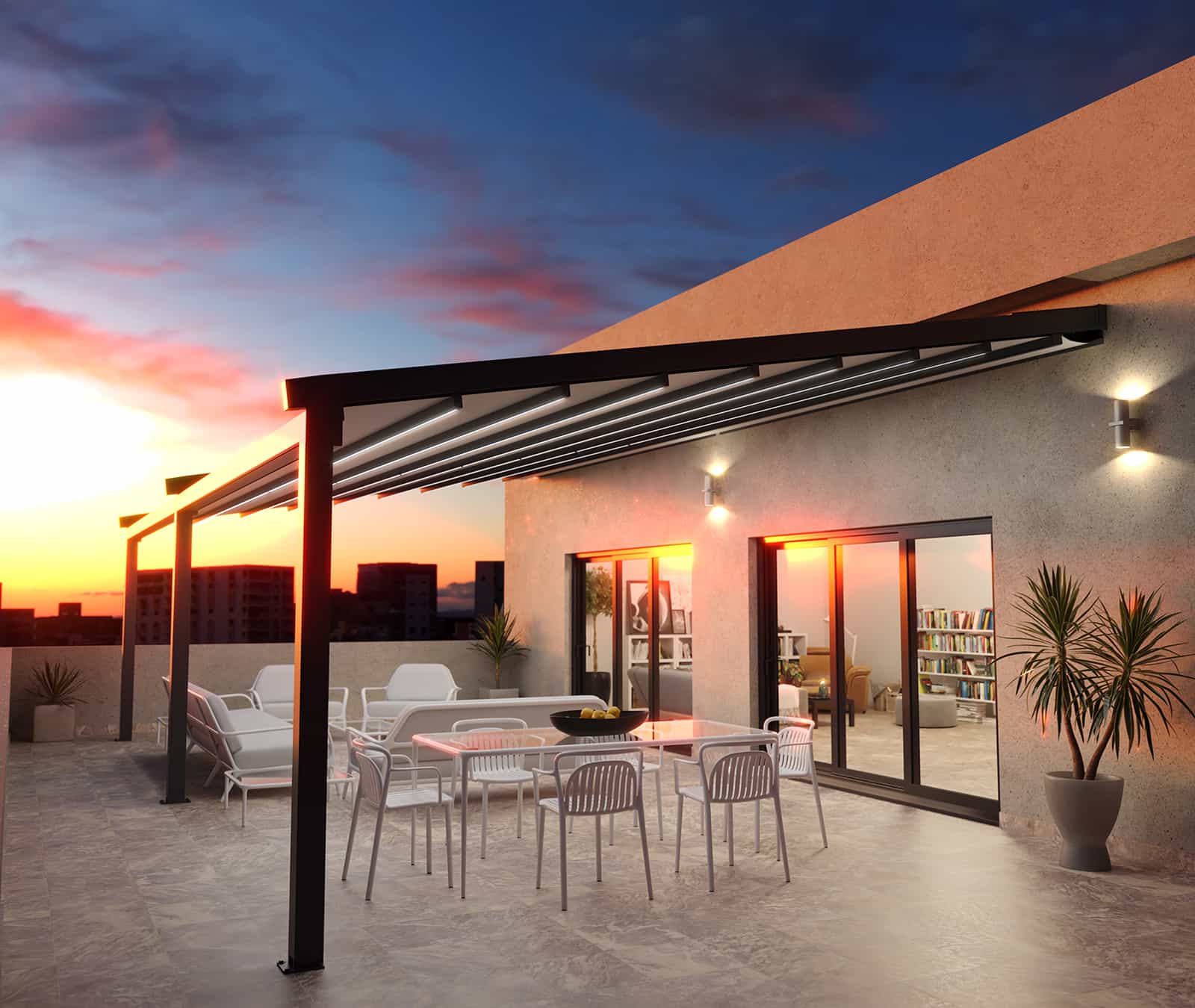 Sí, Pergo Rain puede instalarse en terrazas, patios, jardines o espacios comerciales. Está diseñado para adaptarse a diferentes tamaños y configuraciones, y su estética moderna se ajusta perfectamente a cualquier estilo de decoración exterior.