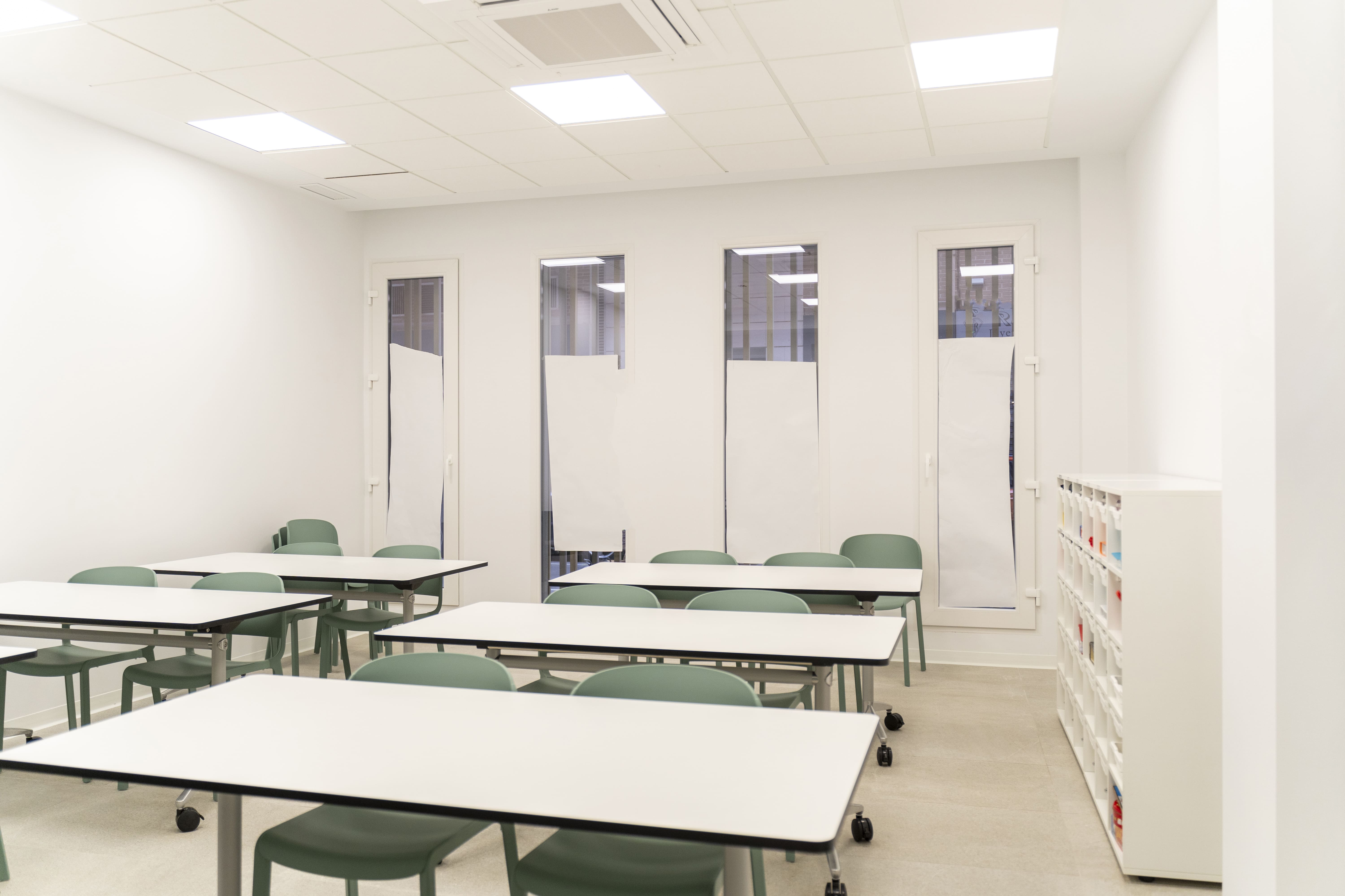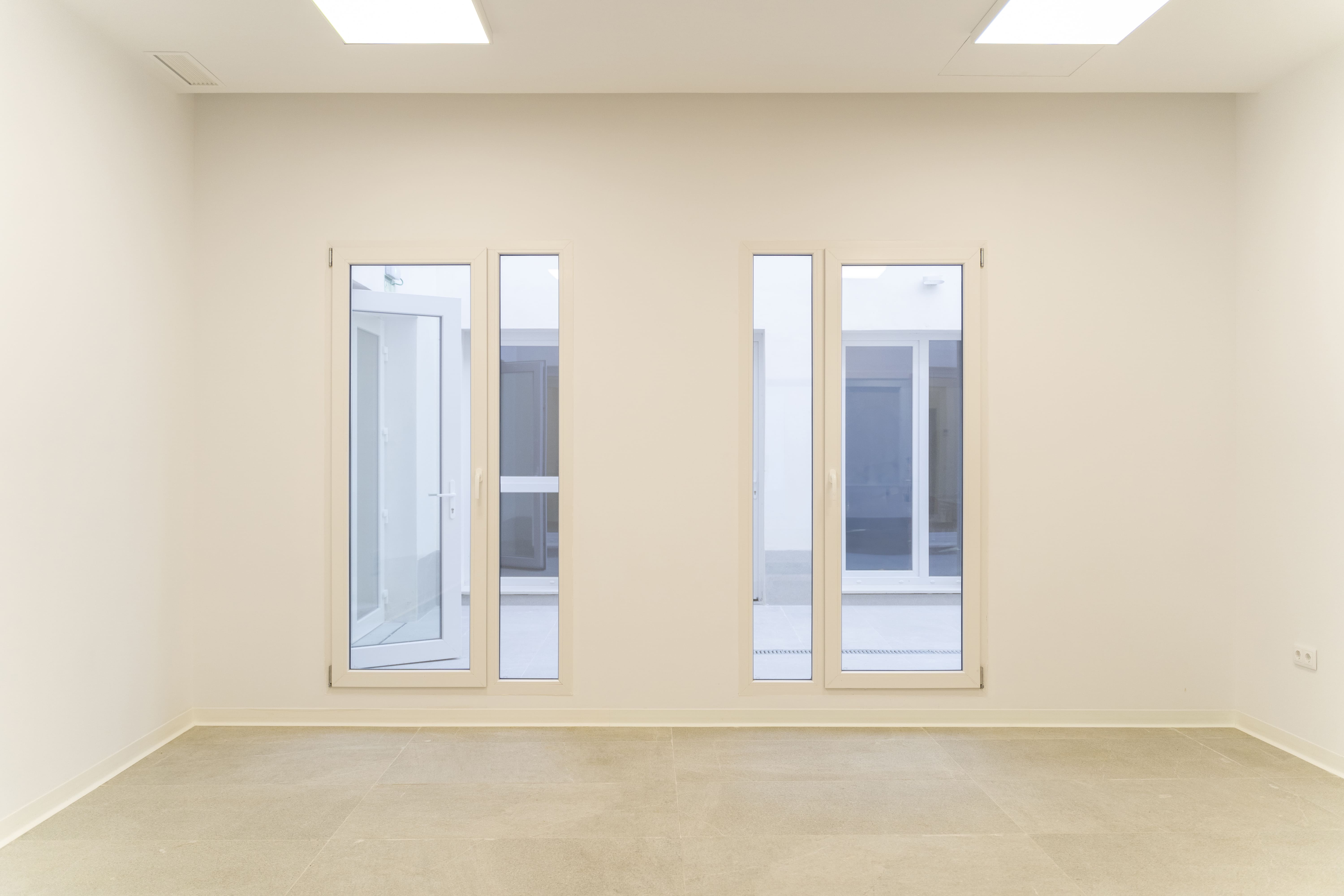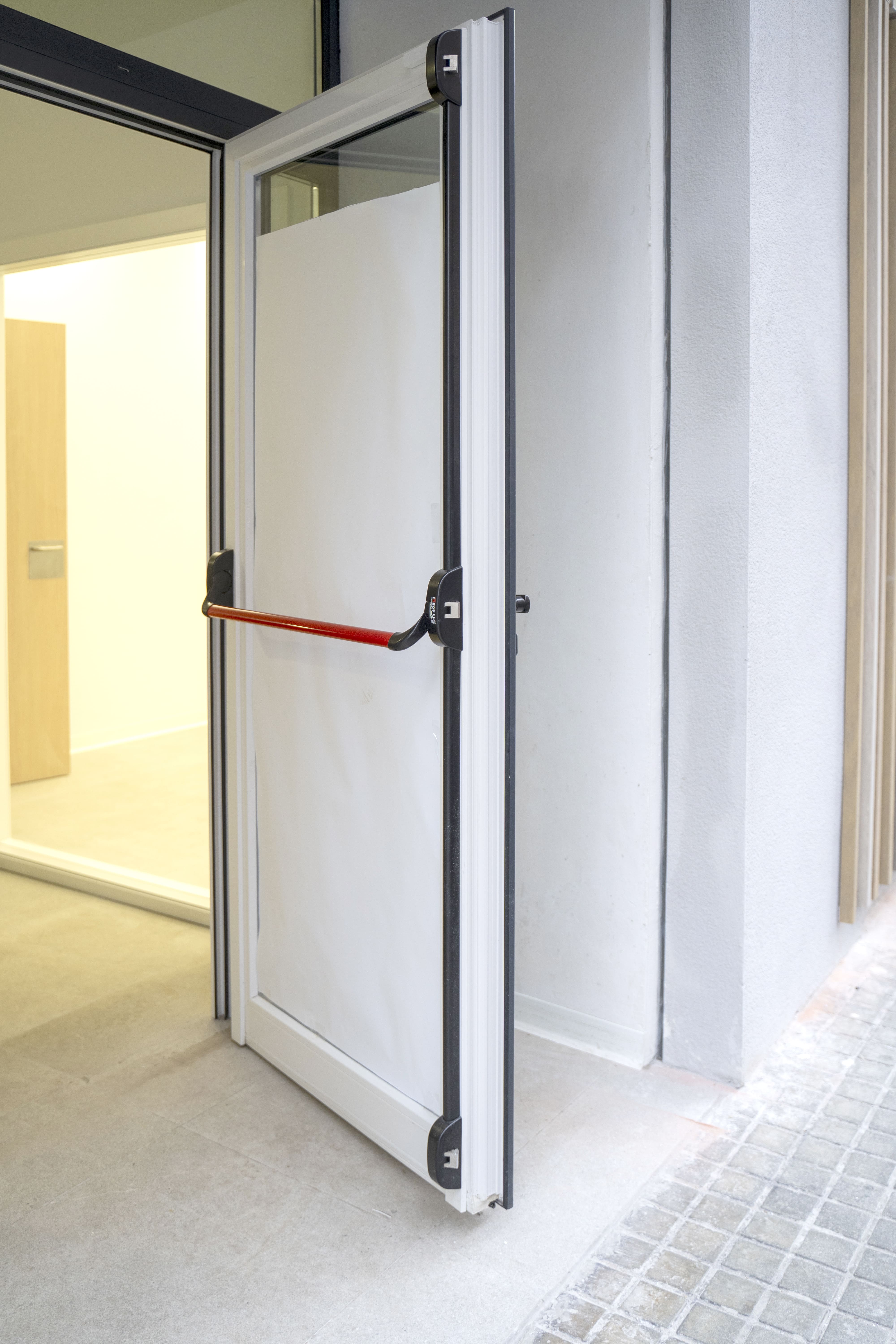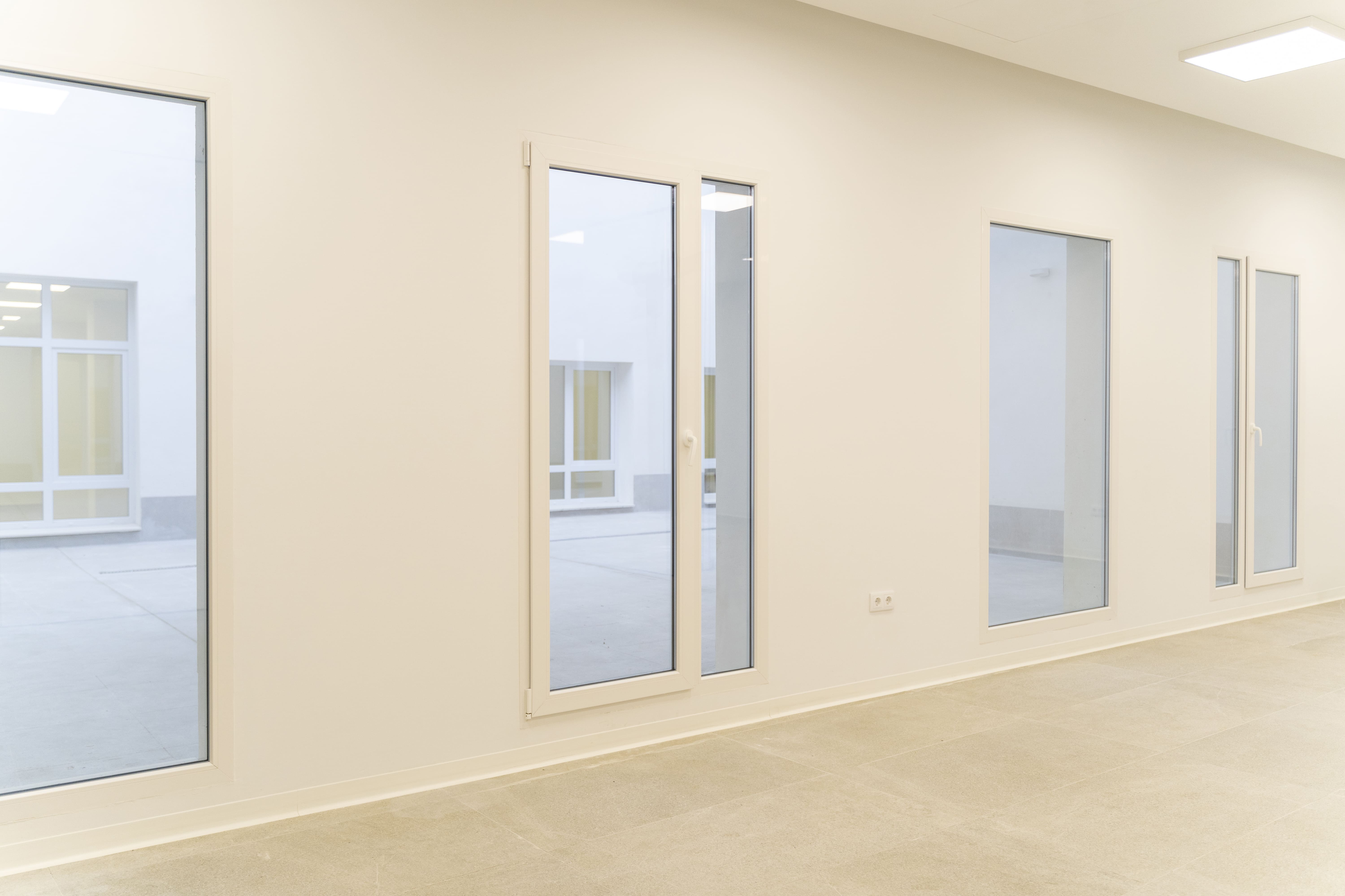 Proyecto con la Serie Common PVC 76, instalando ventanas abatibles, fijos y puertas de acceso a patios interiores en blanco mate, cuidando el confort térmico y acústico de las aulas. La puerta principal de acceso cuenta con salida de emergencia y fijos de fachada en acabado bicolor (7016 TXT exterior y blanco mate interior), aportando funcionalidad sin perder la estética. Formar parte de iniciativas como esta reafirma nuestro compromiso con la construcción de espacios que suman valor social.