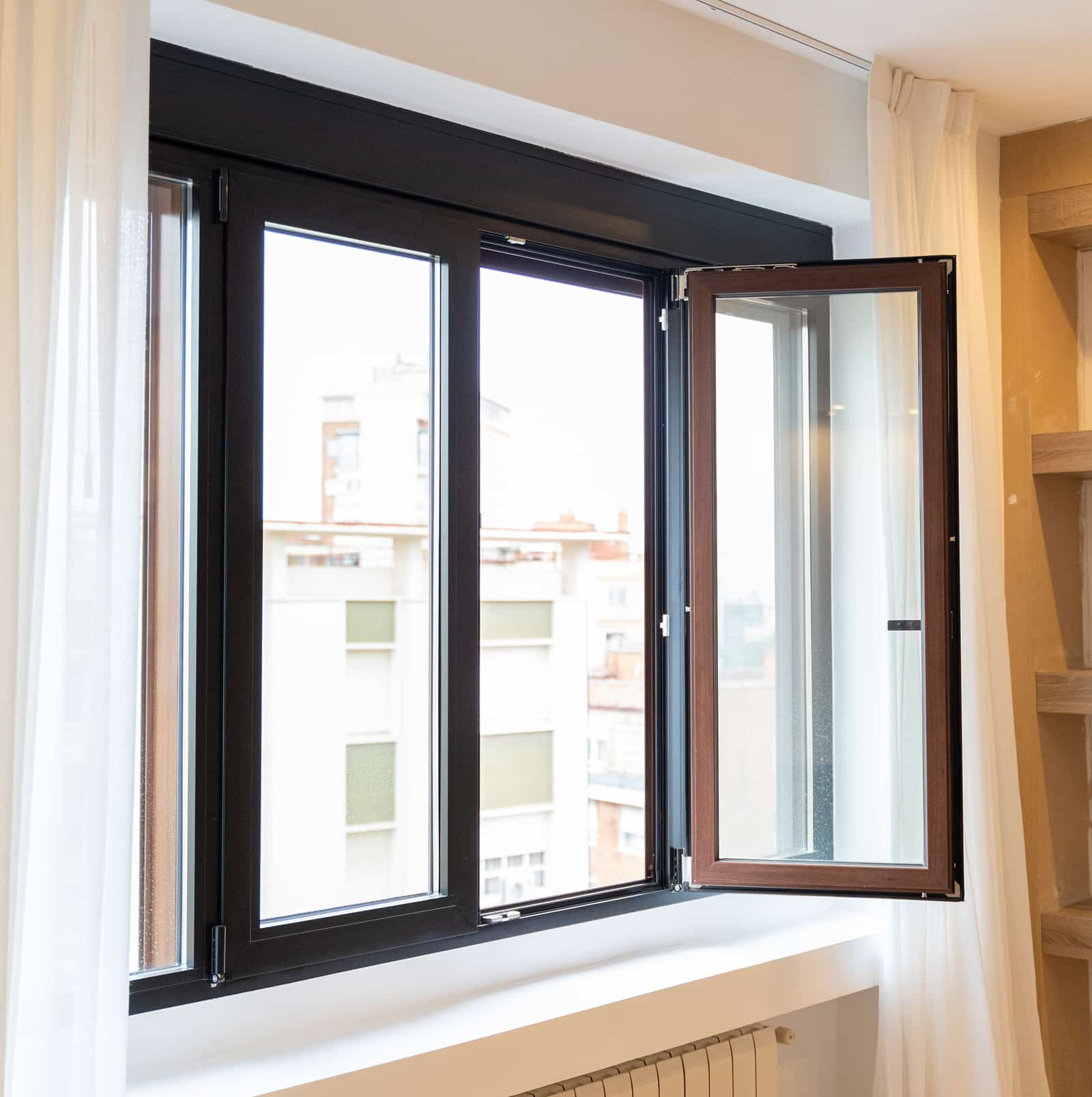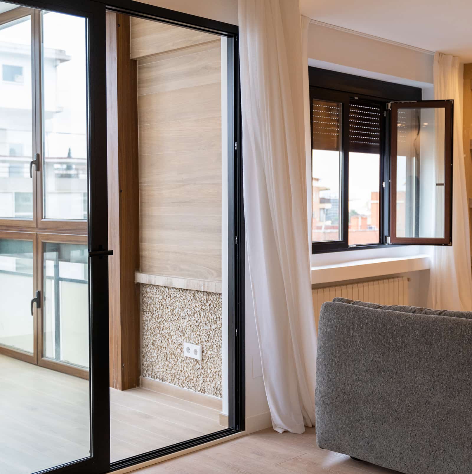 Reforma integral con ventanas bicolor respetando la fachada del edificio pero dando el toque interior con el color deseado