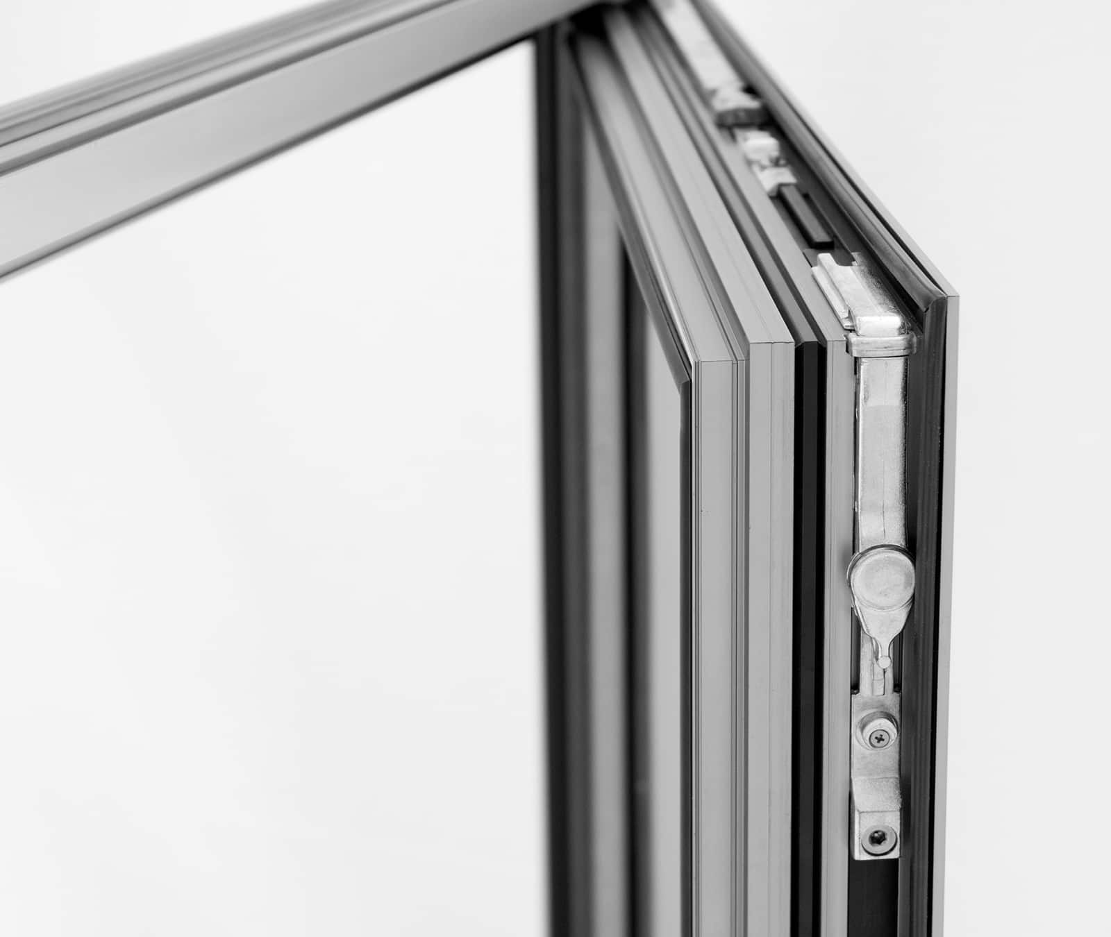 Perfiles minimalistas y hoja oculta que nos permiten una máxima entrada de luz. Diseño, confort y altas prestaciones.